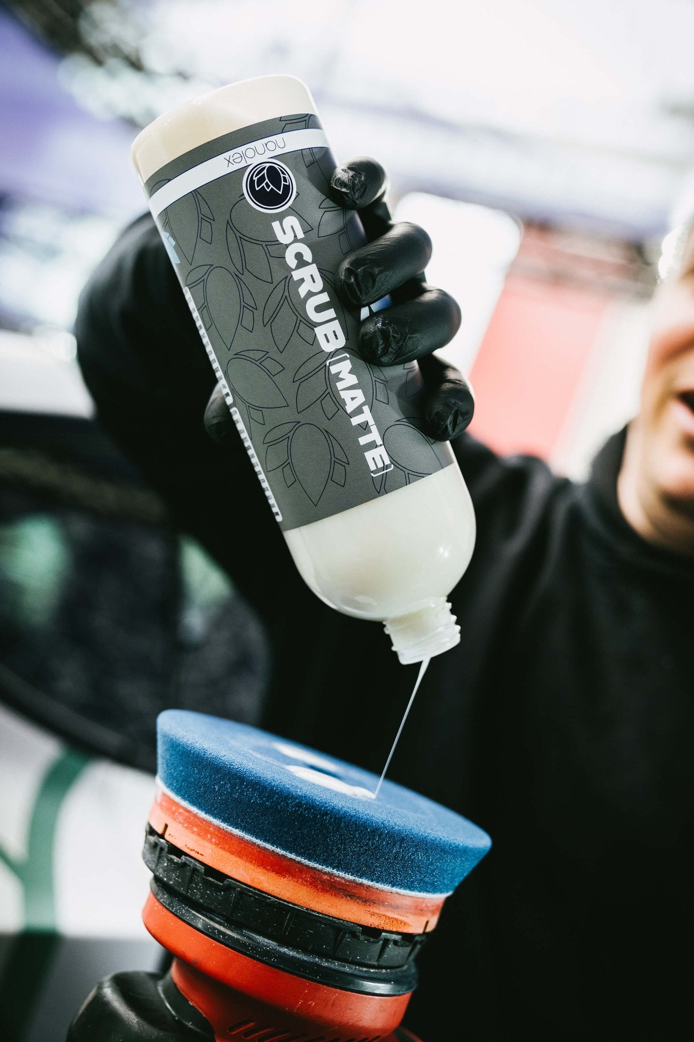 שים לב: Nanolex Scrub (Matte) אינו מסיר שריטות – זהו אינו חומר פוליש, אך הוא עלול להשפיע על שכבות קיימות של אוטם, ווקס או ציפוי. מומלץ לבדוק קודם באזור נסתר.