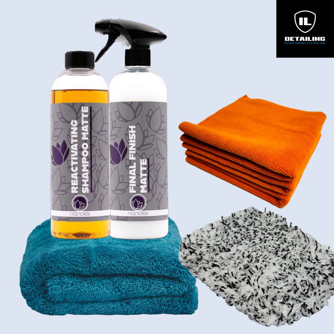- שמפו Nanolex Reactivating Matte Shampoo – מנקה בעדינות, משמר את המראה המט, ומשחרר לכלוך מתחת לשכבות הגנה קיימות
